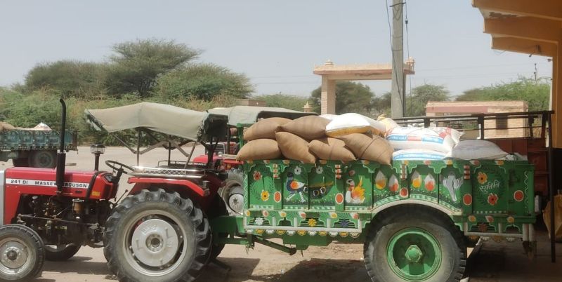 नाचना. खरीद केन्द्र पर ट्रैक्टर में बेचने के लिए लाई गई फसल।