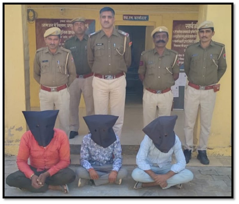 जैसलमेर. सोलर प्लांट में डकैती की वारदात का पुलिस ने खुलासा करते हुए तीन आरोपियों को गिरफ्तार किया। गौरतलब है कि गत 4 अगस्त को सिक्योरिटी एरिया मैनेजर श्रवणसिंह ने पुलिस थाना सांकड़ा पर रिपोर्ट पेश की कि 3 अगस्त 2021 सुबह एनटीपीसी साइट पर तीन गाडिय़ां आई तथा गाडिय़ों में आरोपियों ने अफरा-तफरी करते हुए दाखिल हुए। आरोपियों के पास हथियार, लाठी और लोहे की रोडें थी, जिसके कारण ये सभी नाकाबपोश धारी स्टोर में तैनात सभी सेक्योरिटी गार्ड पर हमला कर सभी नकाबपोशधारी मेटेरियल स्टोर से डीसी केबल के ड्रम तीन गाडिय़ों में भरकर ले गए। पुलिस ने प्रकरण दर्ज कर जांच शुरू की। एसपी के निर्देश पर उप निरीक्षक आदेश कुमार के नेतृत्व में टीम का गठन कर टीम द्वारा सरगर्मी से तलाश कर प्रकरण में एक वर्ष से अधिक समय से फरार वांछित मुल्जिमान महिपालसिंह पुत्र किशोरसिंह निवासी चामू, सुमेरसिंह पुत्र नखतसिंह निवासी सांवतसिह की ढाणी उग्रास व गोपाराम पुत्र सवाईराम निवासी उग्रास को दस्तयाब कर बाद पूछताछ गिरफ्तार किया गया। पुलिस टीम में उप निरीक्षक आदेश कुमार, कांस्टेबल भोपालसिंह, मूलदान, रेखाराम, सोहनलाल, सवाईसिंह तथा साईबर सैल से हजारसिंह व भीमरावसिंह शामिल थे।