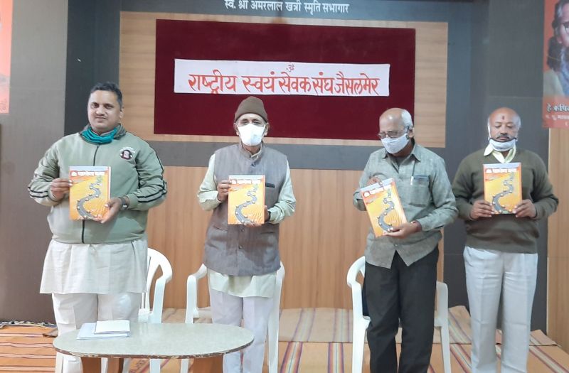 जैसलमेर. कोरोना काल में राष्ट्रीय स्वयंसेवक संघ की ओर से किए गए सेवा कार्यों पर केंद्रित पाथेय कण के सेवा विशेषांक का रविवार को जैसलमेर में विमोचन किया गया। इस अवसर पर सह प्रांत प्रचारक जोधपुर राजेश ने बताया कि संघ के तीन लाख से अधिक स्वयंसेवकों ने 55 हजार से अधिक स्थानों पर सेवा कार्य किए। इस दौरान 2.25 करोड़ भोजन पैकेट व 3-4 लाख भोजन किट वितरित किए गए। इस अवसर पर विभाग संघचालक डॉ. दाऊलाल शर्मा, जिला संघचालक त्रिलोकचंद खत्री और व सह प्रांत कार्यवाह अमृत दैया भी मौजूद थे।