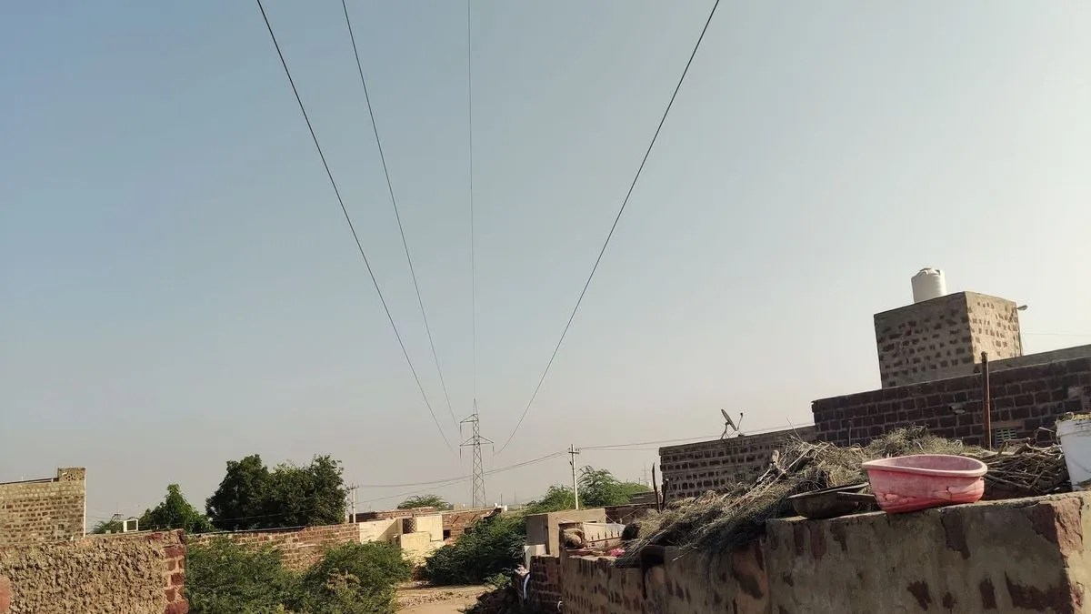 पोकरण के शिवपुरा क्षेत्र में मकानों के ऊपर से गुजरती हाइटेंशन विद्युत तारें।