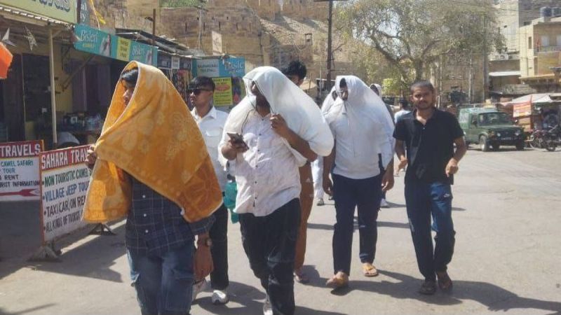 स्वर्णनगरी सहित मरुस्थलीय जिले में पिछले तीन दिनों से लगातार पड़ रही भीषण गर्मी के बीच बुधवार को मामूली राहत मिली। दक्षिण-पश्चिम की तेज हवाओं के बहने से पारे में भी थोड़ी गिरावट आई। हालांकि धूप की तल्खी में कोई कमी नहीं रही। मौसम विभाग के अनुसार दिन का अधिकतम तापमान 43.6 और न्यूनतम २5.0 डिग्री सै. रिकॉर्ड किया, जो एक दिन पहले क्रमश: 45.0 व २7.5 डिग्री रहा था। इस तरह से अधिकतम तापमान में 1.4 और न्यूनतम में 2.5 डिग्री की गिरावट आई। बुधवार अलसुबह मौसम में शीतलता थी। जो धूप निकलने के बाद भी कायम रही। दिन चढऩे के साथ तपिश में बढ़ोतरी हो गई। इस कारण लोगों को खुले में धूप का सामना करने में कठिनाइयां पेश आई। आगामी तीन दिनों के दौरान पारे में गिरावट आने और तद्नुसार भीषण गर्मी से थोड़ी और राहत मिलने की सम्भावना जताई गई है। उसके बाद फिर से लू चलने व पारे में उछाल का पूर्वानुमान जताया गया है।