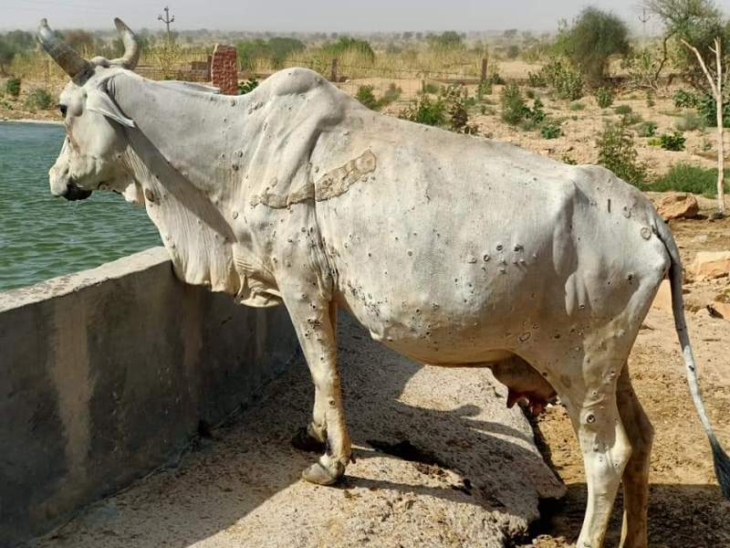 जैसलमेर. मरुस्थलीय जिले के ग्रामीण क्षेत्रों में गोवंश में अब भी संक्रमण से जुड़ा चर्मरोग अपनी जकड़ में ले रहा है। हालांकि इसका ज्यादा असर करीब तीन महीने पहले देखा गया था लेकिन जैसलमेर मुख्यालय के आसपास के कई गांवों सहित दूरदराज के क्षेत्रों में गोवंश में यह चर्मरोग नजर आ रहा है। जानकारी के अनुसार जिस तरह से पिछले दो साल के दौरान संक्रमण से फैलने वाले कोरोना ने हजारों लोगों को संक्रमित किया था, वैसे ही चर्म से जुड़ा यह रोग एक पशु से दूसरे पशु में फैल रहा है। इस वायरल बीमारी से कई पशुओं के बीमार होने की जानकारी सामने आ रही है। जानकारी के अनुसार संक्रमित पशु के संपर्क में आने से स्वस्थ पशु भी बीमार हो जाता है और उसकी त्वचा पर छोटी-छोटी गांठें बन जाती हैं। ज्यादातर यह बीमारी गोवंश तथा भैंस में देखा गया है। जिले के विजयनगर गांव में पशुपालकों का कहना है कि उन्हें सरकारी दवाइयों का लाभ नहीं मिल रहा है। उन्हें बाजार से पशुओं के लिए दवाइयां खरीदनी पड़ रही है।