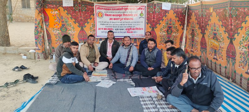 जैसलमेर. वेतन विसंगति की मांग को लेकर जेल कार्मिक 13 तारीख से अन्न त्याग कर लगातार ड्यूटी कर रहे हैं। इस दौरान कुछ कार्मिकों का स्वास्थ्य खराब होने के कारण जवाहिर चिकित्सालय में भर्ती करवाया गया। अखिल राजस्थान राज्य कर्मचारी संयुक्त महासंघ एकीकृत के जिलाध्यक्ष रावलसिंह बडोडा गांव ने बताया कि जेल परिसर में ही ड्यूटी कर रही 13वीं आरएएसी के समान वेतन की मांग को लेकर सम्पूर्ण राजस्थान के जेल कार्मिक मैस का बहिष्कार कर ड्यूटी पर रहते हुए अन्न का परित्याग कर रहे है। शीत लहर में भूखे पेट ड्यूटी करने के दौरान कार्मिकों के स्वास्थ्य पर लगातार प्रतिकूल प्रभाव पड़ रहा हैं। महानिदेशक और गृह सचिव से वार्ता होने के बावजूद बात नहीं बन पाई। महासंघ के जिला उपाध्यक्ष मनोज कुमार मीणा ने बताया कि जैसलमेर जेल कारागार में रविवार शाम से अभी तक 3 कार्मिकों का स्वास्थ्य बिगडऩे पर उन्हें स्थानीय जवाहिर चिकित्सालय में भर्ती करवाया गया हैं। मुख्यमंत्री से वार्ता और वेतन विसंगति के आदेश की मांग को लेकर अड़े कार्मिकों ने बताया कि वार्ता के लिए कई प्रतिनिधिमण्डल अनेक सरकारी प्रतिनिधियों से मिल चुके हैं। जैसलमेर से भी प्रतिनिधिमण्डल में शामिल होने के लिए मुख्य प्रहरी प्रेमराज शर्मा रविवार सांय जयपुर गए हैं। महासंघ के श्रवण कुमार ने बताया कि कर्मचारियों के स्वास्थ्य की जानकारी हेतु जिला पुलिस अधीक्षक भंवरसिंह नाथावत भी जेल परिसर पहुंचे। इसके अलावा मेडिकल टीम लगातार कार्मिकों की स्वास्थ्य जांच कर रही हैं।