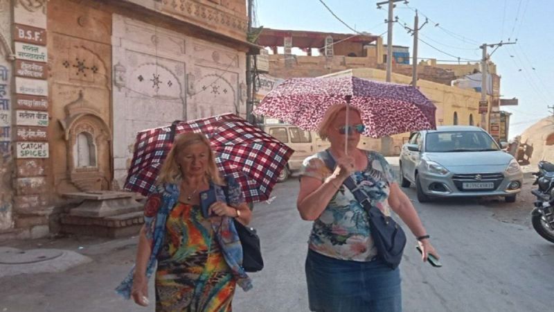 स्वर्णनगरी में प्रचंड गर्मी का सिलसिला थमने का नाम नहीं ले रहा है। बुधवार को लगातार तीसरे दिन अधिकतम पारा 46 डिग्री के पार चला गया। यह 46.4 डिग्री रिकॉर्ड किया गया, जो अब तक का सर्वाधिक है। इससे पहले गत सोमवार को पारा 46.2 और मंगल को 46.3 डिग्री दर्ज हुआ था। बुधवार को दिन में गर्मी का प्रकोप इतना ज्यादा था कि अक्षय तृतीया का लोकपर्व होने के बावजूद बहुत कम लोग दोपहर और उसके बाद बाहर निकल सके। सडक़ें सुनसान रही और शहर के भीतरी भागों में भी आवाजाही सीमित देखी गई। आकाश से एक बार फिर अंगारों की मानिंद धूप की किरणें धरती पर फैली और जो भी व्यक्ति उसके सीधे सम्पर्क में आया, मानो झुलस गया। विगत एक पखवाड़े से जैसलमेर में हद पार गर्मी के कारण पूरा वातावरण ऊष्ण हो गया है, जिससे घरों में फर्श व कमरों की दीवारें तक गर्म हो रही हैं। शहरवासी पसीने से तरबतर होने को विवश हैं। गर्मी से फौरी राहत के लिए लोग शीतल पेय पदार्थों का अधिकाधिक सेवन कर रहे हैं। उनकी दिनचर्या में खासा बदलाव आ गया है।