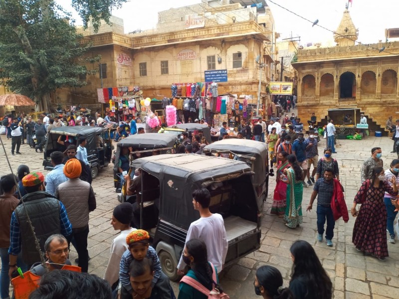 जैसलमेर। जैसलमेर में इन दिनों पर्यटन सीजन चरम पर चल रहा है। हजारों की तादाद में देशी सैलानी स्वर्णनगरी निहारने के लिए खींचे चले आ रहे हैं और उनके आकर्षण का केंद्र बना हुआ है जैसलमेर का ऐतिहासिक सोनार दुर्ग। दुर्ग भ्रमण के समय उन्हें टैक्सियों की बेरोकटोक आवाजाही तथा जमघट से बेजा परेशानियों का सामना करना पड़ रहा है। पैदल भ्रमण करने वाले पर्यटकों को चीरते हुए दुर्ग की घुमावदार घाटियों में एक के बाद एक टैक्सियां दनदनाती हुई जब आवाजाही करती है तो वे यकायक घबरा जाते हैं और उनके होश फाख्ता हो जाते हैं। यह सब पिछले कई दिनों से लगातार चल रहा है। दूसरी तरफ दुर्ग के दशहरा चौक में टैक्सियों तथा ठेलों-रेहडिय़ों की भीड़ से सैलानियों को पांव रखने की कई बार जगह नहीं मिलती।