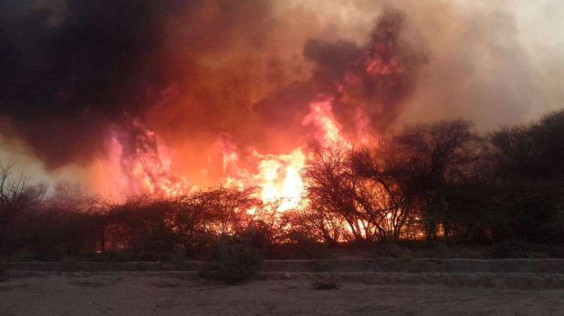 जैसलमेर. जैसलमेर के सरहदी तेजपाला ग्राम पंचायत के बड्डा गांव में सोमवार शाम पौने सात बजे लगी आग ने विकराल रुप ले लिया और देखते ही देखते यह आग गांव तक पहुंच गई। जिससे ग्रामीण क्षेत्रों में दहशत का माहौल बन गया है। आग लगने के बाद प्रशासन के नहीं पहुंचने से ग्रामीणों की ओर से आग बुझाने के किए जा रहे प्रयास ना काफी साबित हो रहे थे।