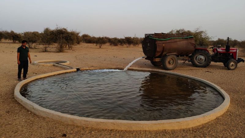 तपती रेत में जानवरों को पानी की तलाश होती है। छोटे तालाब सूख जाते हैं और जंगलों में कोई स्रोत नहीं बचता। राधेश्याम ने इस पीड़ा को महसूस किया और 2018 में एक सपना देखा च्रेगिस्तान में हर जीव को पानी मिलेज्। उन्होंने अपने संसाधनों से भादरिया, धोलिया, लाठी और आसपास के जंगलों में 50 से अधिक जलकुंड बनवाए। टैंकर मंगवाकर पानी भरवाते, ताकि कोई भी पशु-पक्षी प्यासा न मरे।