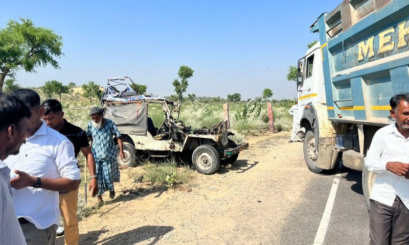 गड्ढ़े से बिगड़ा डम्पर का संतुलन, जीप से भिड़ी, उड़े परखच्चे, पति-पत्नी सहित 4 की मौत
