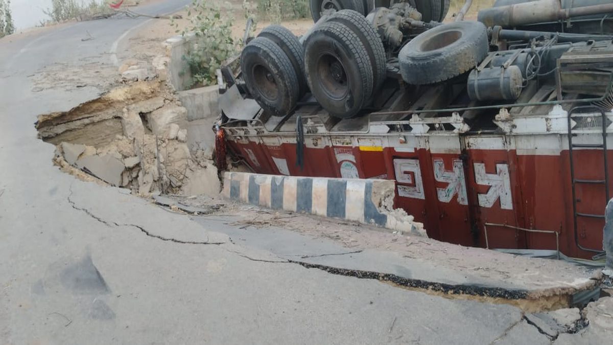 मोहनगढ़ नहरी क्षेत्र में एसबीएस नहर 16 आरडी से निकलने वाली जेजेडब्ल्यू नहर पर बना पहला पुलिया पूरी तरह से क्षतिग्रस्त हो चुका था, जिस पर गुरूवार रात्रि चने की बोरियों से भरे ट्रक के गुजरने से पुल टूट गया। पुल के टूटने से ट्रक बोरियों सहित पलट कर उल्टा नहर में गिर गया। चने की बोरियां भी नहर में गिर गई। चालक ने ट्रक से बड़ी मुश्किल से निकल कर अपनी जान बचाई। गनीमत यह रही कि कोई बड़ा हादसा नहीं हुआ। ट्रक चालक को मामूली चोटें आई। गौरतलब है कि एसबीएस नहर की 16 आरडी से निकले जेजेडब्ल्यु नहर का प्रथम पुल पिछले कई सालों से क्षतिग्रस्त था। ग्रामीणों के अनुसार जिम्मेदार विभाग के अधिकारियों को इस संबंध में अवगत कराया जा चुका था, बावजूद इसके किसी ने इस संबंध में सकारात्मक कवायद नहीं की।