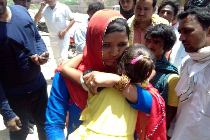 करीब चार घंटे की मशक्कत के बाद भी बच्ची के परिजनों का पता नहीं लगा। पुलिस, ग्रामीण, मीडियाकर्मी व मेडिकल दुकानदार लगातार परिजनों की तलाश में घूम रहे थे। इसी दौरान एक महिला यहां दौड़ती हुई आई तथा बच्ची को देखा, तो उसकी मुस्कान खिल उठी। बच्ची भी अपनी मां को देखकर मुस्कुराने लगी और भागती हुई मां से लिपट गई।मां व बच्ची दोनोंं की आंखों से आंसू टपक रहे थे तथा मिलने की खुशी साफ नजर आ रही थी।यहां उपस्थित थानाप्रभारी रेंवतसिंह ने महिला से पूछताछ की, तो उसने अपना नाम पंजाब के अबोहर थानांतर्गत बहादरखेड़ा निवासी संदीप पत्नी तरसेन मजबी सिक्ख बताया। उसने बताया कि उसका परिवार गत वर्ष नाचना में काश्त करने आया था, तब से वे नाचना में निवास करते है तथा यहां मणिहारी का सामान बेचते है।उसने बताया कि उसका पड़ौसी बालक कन्हैया उसकी बच्ची को अस्पताल में उपचार के लिए लेकर आया था तथा पुन: चला गया।जब उसे पता चला कि बच्ची गायब है, तो वह उसे ढूंढने पुन: अस्पताल आई और मेडिकल दुकान पर बच्ची मिल गई।सूचना मिलने पर बच्ची का पिता तरसेन भी पुलिस थाने पहुंचा। उसने बच्ची का नाम सिमरन बताया।थानाप्रभारी रेंवतसिंह ने बच्ची के माता-पिता को बताया कि उसने गुमशुदा बच्ची मिलने की सूचना बाल कल्याण अधिकारी जैसलमेर को दे दी है। जिसके चलते उन्हें जैसलमेर जाकर बाल कल्याण अधिकारी के समक्ष उपस्थित होना होगा। जहां पूछताछ व पूरी जांच पड़ताल के बाद ही बच्ची को परिवारजनों को सुपुर्द किया जाएगा।