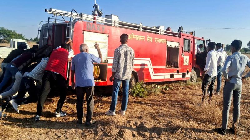 झोंपे में लगी आग की सूचना पर पोकरण नगरपालिका की दमकल मौके के लिए रवाना हुई। प्रहलादसर-चैनपुरा गांवों की सरहद में स्थित झोंपे तक पक्की सडक़ या सही रास्ता नहीं होने के कारण दमकल रेतीले रास्ते से जाने लगी, लेकिन रेतीले धोरों में दमकल फंस गई, जो झोंपे तक भी नहीं पहुंच सकी। ग्रामीणों ने कड़ी मशक्कत कर दमकल को रेत से निकाला और वापिस पोकरण के लिए रवाना किया। दमकल के नहीं पहुंचने पर ग्रामीणों ने पानी व रेत डालकर आग पर काबू किया।