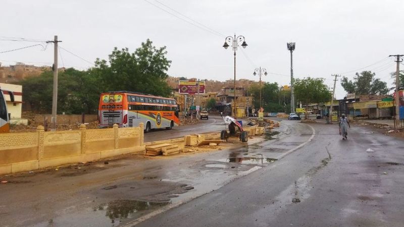 स्वर्णनगरी में भीषण गर्मी पर दो दिन पहले लगा ब्रेक सोमवार को भी जारी रहा। आकाश में बादल छाए रहने से पारा लगातार तीसरे दिन 40 डिग्री के नीचे रहा। हालांकि उमस का असर फिर भी बना रहा। जिसने लोगों के पसीने छुड़वाए। फिर भी हीटवेव से राहत मिलने से लोग खुश हैं। इसका असर दोपहर में सडक़ों पर नजर भी आया। मौसम विभाग के अनुसार दिन का अधिकतम तापमान 38.7 और न्यूनतम 27.0 डिग्री रिकॉर्ड किया गया। एक दिन पहले रविवार को यह क्रमश: 33.8 और 29.9 डिग्री रहा था। बीती देर रात बूंदाबांदी की झड़ी लगने से गलियां व सडक़ें पूरी तरह से तरबतर हो गई। सोमवार सुबह जल्दी भी मामूली बूंदाबांदी हुई। इससे मौसम खुशगवार बना। गत रात अच्छी हवा के चलने से खुले में सोने वालों को चैन की नींद लेने का मौका मिला। विगत दो दिन में जैसलमेर मुख्यालय पर करीब 3 मिलीमीटर पानी बरसा है। लोगों को अभी तक मानसून पूर्व की तेज बारिश का इंतजार बना हुआ है। जिसके मौसम विभाग के आगामी कुछ दिनों के पूर्वानुमानों में कोई आसार नहीं दिखाई दे रहे हैं। धूप की तपिश में कमी से पंखों व कूलर की हवा राहत अवश्य दिला रही है।
