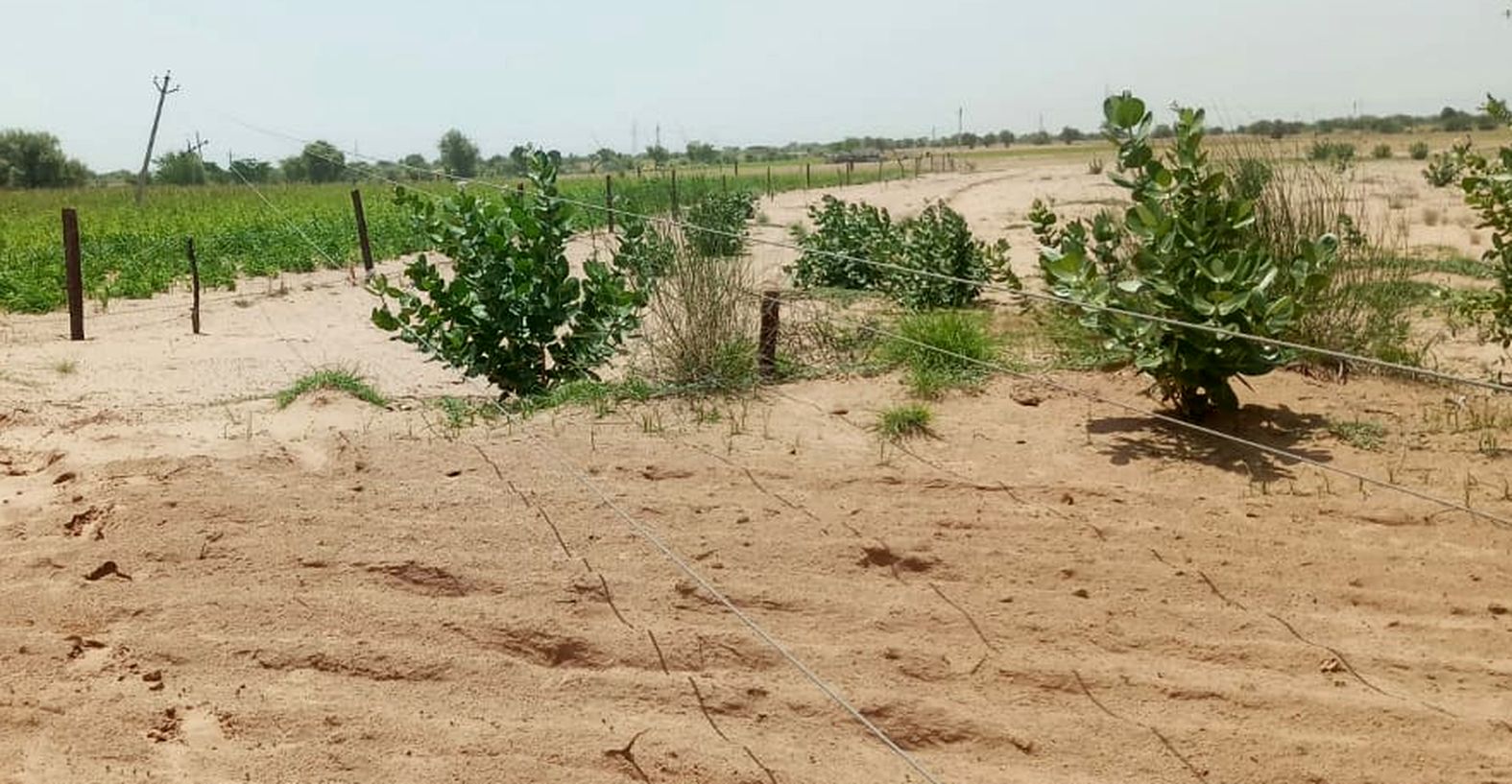 लाठी. खेत में फसलों के ऊपर गिरी विद्युत तार।