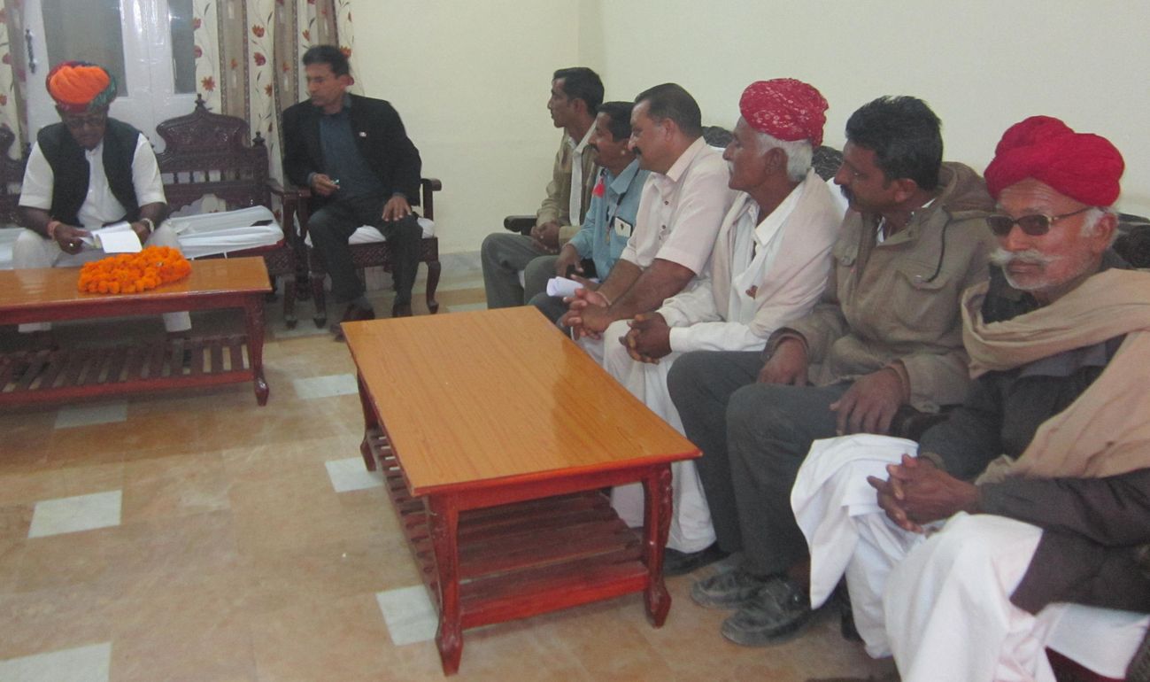 जनसुनवाई के दौरान धोलिया के पशुपालक बगडुराम विश्नोई, सांवता के गंगासिंह, सुमेरसिंह, हमीरा के बाबूसिंह, खाभा के मूलसिंह के साथ ही अन्य पशुपालकों ने बोर्ड के अध्यक्ष को अपनी समस्याओं से संबंधित प्रार्थना पत्र पेश करते हुए बताया कि उनके नर ऊंटों को मेलों में विक्रय करने की सुविधा उपलब्ध कराने, पशुओं की बीमारी के लिए अचला, सांवता, रासला, धोलिया, सांकडा, सत्ता, सत्तों में पशु चिकित्सा केम्प लगाने, एक भामाशाह कार्ड पर 5 पषुओं के स्वास्थ्य बीमा होने की संख्या की बढ़ोतरी कराने, गोचर भूमि का सीमांकन कराने की मांग की। बोर्ड के अध्यक्ष श्री राईका ने संयुक्त निदेशक पशुपालक को निर्देश दिए कि वे इन गांवों में शीघ्र ही पशु चिकित्सा केम्प लगाकर पषुओं का उपचार करावें। अध्यक्ष राईका ने पशुपालकों को बताया कि पंचायतों के माध्यम से गोचर भूमि पर लगे अग्रेजी बबूल की सफाई कराने का भी प्रावधान करने की योजना है, वहीं जिला प्रशासन के माध्यम से गोचर भूमि का सीमांकन कराने का भी विश्वास दिलाया।
