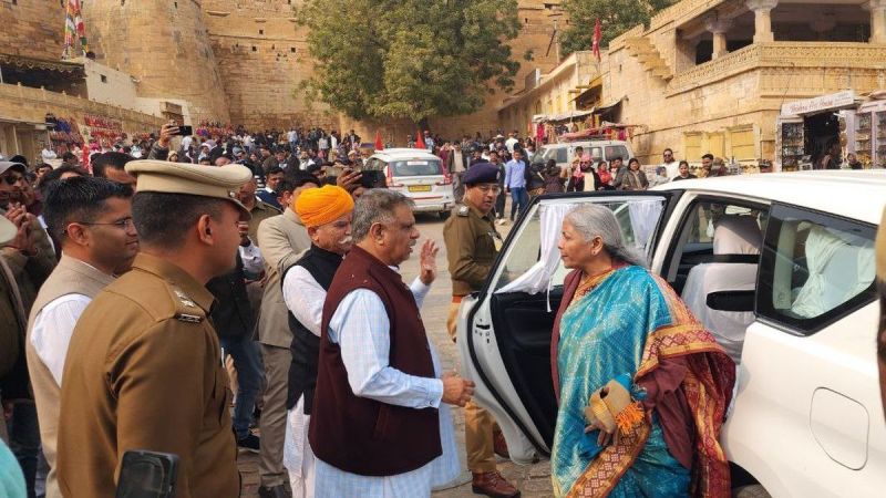 देश की वित्त मंत्री निर्मला सीतारमण जैसलमेर यात्रा के तीसरे और अंतिम दिन एकदम खुशनुमा मूड में नजर आईं। दो दिन तक जीएसटी काउंसिल की बैठकों में देश के अहम वित्तीय पहलुओं पर सिर खपाने के बाद उन्होंने रविवार को पहले भारत-पाकिस्तान सीमा पर अवस्थित चमत्कारी तनोटराय मंदिर में जाकर पूजा-अर्चना की और वहां शहीदों को श्रद्धासुमन अर्पित किए और बाद में जैसलमेर शहर के ऐतिहासिक सोनार दुर्ग व मंदिर पैलेस की बड़ी तसल्ली के साथ यात्रा की। उन्होंने सीमा सुरक्षा बल के अधिकारियों से मंदिर व्यवस्थाओं से लेकर बॉर्डर की सुरक्षा के बारे में चर्चा की वहीं लाखों लोगों के आकर्षण के केंद्र जैसलमेर दुर्ग व महलों के स्थापत्य सौन्दर्य का अवलोकन किया। उन्होंने शहर भ्रमण के दौरान स्थानीय बाशिंदों के साथ देशी सैलानियों के साथ संवाद किया और फोटो खिंचवाए। देश के मंत्रियों में टॉप 5 ग्रुप में शामिल निर्मला सीतारमण के सहज भाव ने हर किसी को प्रभावित किया।