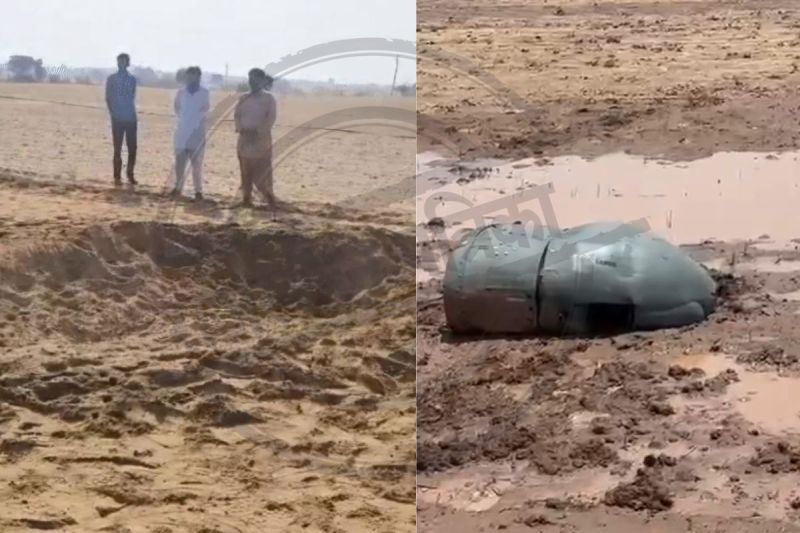 जैसलमेर जिले के सीमावर्ती इलाके में गिरे बम की तस्वीर।