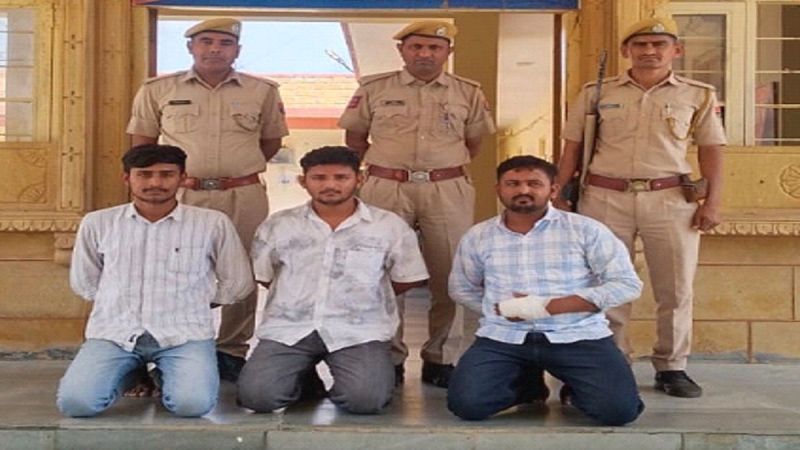 जैसलमेर शहर से कुछ दूर स्थित सम रोड पर एक होटल के पास सैलानियों के साथ मारपीट और गाड़ी में तोड़फोड़ करने वाले तीन बदमाशों को जिला पुलिस ने चंद घंटों में गिरफ्तार कर लिया। घटना की सूचना मिलते ही पुलिस अधीक्षक अभिषेक शिवहरे ने तत्काल आरोपितों की धरपकड़ के निर्देश दिए, जिसके बाद अतिरिक्त पुलिस अधीक्षक कैलाशदान जुगतावत के निर्देशन, वृताधिकारी रूपसिंह ईन्दा के सुपरविजन और थाना सदर के थानाधिकारी सुरजाराम के नेतृत्व में पुलिस टीमों का गठन किया गया। इन टीमों ने सक्रियता दिखाते हुए तकनीकी सहयोग और आसूचना संकलन के आधार पर बदमाशों की तलाश शुरू की और जल्द ही तीनों आरोपितों को दबोच लिया। गिरफ्तार किए गए आरोपितों में दलपतसिंह पुत्र तनसिंह निवासी कोटड़ा थाना शिव जिला बाड़मेर, पर्बतसिंह पुत्र नारायणसिंह निवासी बलाई थाना शिव जिला बाड़मेर और भूपालसिंह पुत्र रतनसिंह निवासी कोटडिया तला, खारा राठोड़ान थाना रामसर जिला बाड़मेर शामिल हैं।