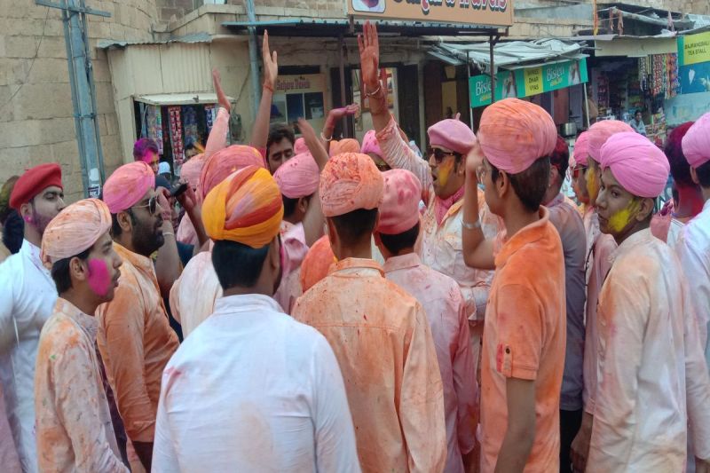 कलात्मक सुंदरता व गौरवमयी संस्कृति के कारण विश्व स्तरीय ख्याति अर्जित कर चुकी स्वर्णनगरी में होली पर्व मनाने का तरीका निराला ही है। यहां उत्साह से परिपूर्ण माहौल है तो मस्ती भी, भक्ति का माहौल है तो रीति-रिवाजों का निर्वहन भी, अपनत्व की भावना के साथ खुशियों का माहौल है तो उत्सव का उल्लास भी...। जैसलमेर में होल्काष्टïमी के दिन से इस पर्व को मनाना शुरू कर दिया जाता है। होली पर्व से पूर्व एकादशी की तिथि पर फाग खेलने के बाद यहां के पुष्करणा ब्राह्मïणों की गैरें निकलनी शुरू हो जाती है। होली से एक दिन पूर्व गड़ीसर तालाब पर बनी प्राचीन बगेचियों में गोठ का आयोजन किया जाता है। हकीकत यह भी है कि यहां के बाशिंदों के साथ-साथ होली के रंग विदेशी सैलानियों को भी रिझाते हंैं। इन दिनों स्वर्णनगरी में चारों ओर होली गीतों की गूंज सुनाई दे रही हैं। जिस तरह मथुरा, वृंदावन, गोकुल और बरसाना में भगवान कृष्ण के मंदिरों में भक्ति भाव से ओत प्रोत होकर रंग अबीर गुलाल उड़ाने के साथ फाग खेला जाता है, ठीक उसी तरह यहां भी प्राचीन दुर्ग के लक्ष्मीनाथ मंदिर में होल्काष्टïमी से फाग खेलना शुरू कर दिया जाता है।