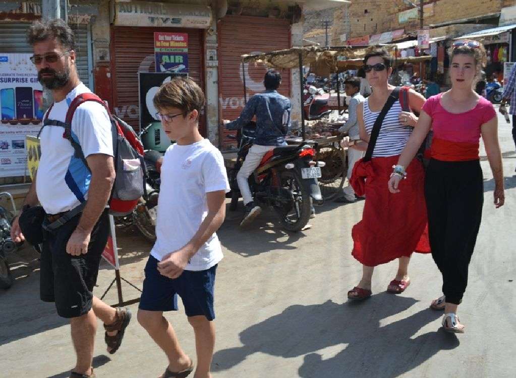 जैसलमेर.विश्व पर्यटन मानचित्र पर विशिष्ट पहचान बना चुकी स्वर्णनगरी में पर्यटकों की रेलमपेल शुरू हो गई है। सात समंदर पार से विदेशी मेहमान सुहावने मौसम में अपने परिवार के साथ पर्यटन स्थलों व मुख्य मार्गों पर पैदल भ्रमण करते देखे जा सकते है। विदेशी मेहमानों के साथ देशी पर्यटक भी यहाँ बड़ी संख्यां में पहुँच रहे है।