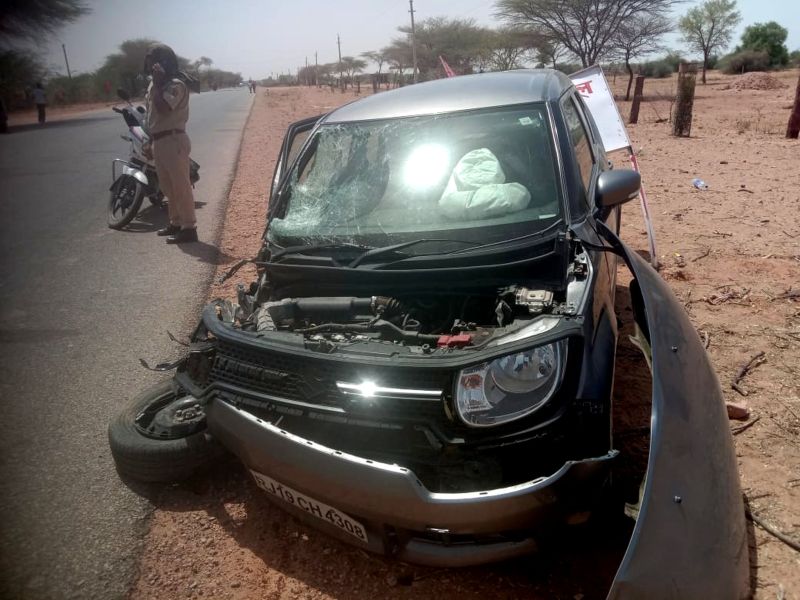 पोकरण. राष्ट्रीय राजमार्ग संख्या 125 पोकरण-जोधपुर मार्ग पर लवां गांव के पास बुधवार को दोपहर दो कारों की आमने-सामने भिड़ंत में एक महिला घायल हो गई। इसके बाद क्षतिग्रस्त पड़ी एक कार से बोलेरो टकरा गई। जिससे उसमें सवार तीन जने घायल हो गए। सभी चारों घायलों को पोकरण में उपचार के बाद जोधपुर रैफर किया गया। क्षेत्र के लवां गांव के पास बुधवार को दोपहर दो कारों की आमने-सामने भिड़ंत हो गई। भिड़ंत इतनी जोरदार थी कि दोनों कारों के परखच्चे उड़ गए और पूरी तरह से क्षतिग्रस्त हो गई। जोधपुर से पोकरण की तरफ आ रही कार पलटने के कारण उसमें सवार जोधपुर के शिकारगढ़ निवासी कंचनकंवर (58) पत्नी इन्द्रसिंह गंभीर रूप से घायल हो गई। सूचना 108 एम्बुलेंस के इएमटी दीपक शर्मा व पायलट सवाईसिंह उज्ज्वल तत्काल मौके पर पहुंचे और घायल को पोकरण के राजकीय अस्पताल लेकर आए। यहां चिकित्सकों ने प्राथमिक उपचार के बाद उसे जोधपुर रैफर कर दिया गया। इसी प्रकार सड़क पर क्षतिग्रस्त पड़ी कार से जोधपुर की तरफ से आ रही एक बोलेरो गाड़ी टकरा गई। जिससे उसमें सवार जालोर के रानीवाड़ा निवासी दिनेश पुत्र प्रतापाराम व महेश पुत्र हीरालाल व बडग़ांव निवासी जिगनेश पुत्र महेश घायल हो गए। उन्हें भी एम्बुलेंस व निजी वाहनों से पोकरण के राजकीय अस्पताल लाया गया और गंभीर हालत के कारण जोधपुर रैफर किया गया।