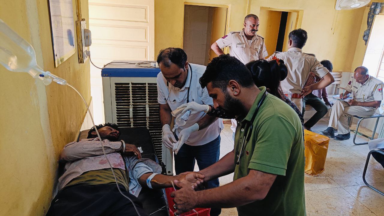 मोहनगढ़ क्षेत्र में बुधवार सुबह जमीन विवाद को लेकर दो गुटों में झड़प में दो महिलाओं सहित सात जने घायल हो गए। घायलों को उपचार के लिए अस्पताल लाया गया, जहां सभी घायलों का उपचार किया गया। एक घायल को प्राथमिक उपचार के बाद उच्च उपचार के लिए अन्यत्र रैफर किया गया। सूचना मिलने पर पुलिस थाना प्रभारी जालमसिंह के निर्देश पुलिस की टीम मौके पर पहुंची। अस्पताल में घायलों के बयान लिए गए। जानकारी के अनुसार कस्बे से पांच किमी दूर जैसलमेर रोड पर आए ओम बन्ना मंदिर के पास वन विभाग की जमीन है, जिस पर गत कुछ समय से परिवार निवास कर रहे है। वन पट्टी में ही जमीन विवाद को लेकर दो गुटों में झड़प हो गई। उन्होंने एक-दूसरे पर पत्थर फेेंके, जिसमें एक पक्ष के राजूनाथ (20) पुत्र टोपननाथ, टोपन नाथ (60) पुत्र शम्भु नाथ, श्रवणनाथ (23) पुत्र टोपननाथ, संतु (23) पत्नी श्रवणनाथ घायल हो गए। इसी तरह दूसरे पक्ष में काली (45) पत्नी मिश्रीनाथ, शेरनाथ (40) पुत्र मिश्रीनाथ, रामनाथ (29) पुत्र मिश्रीनाथ घायल हो गए। घायलों को सामुदायिक स्वास्थ्य केंद्र लाया गया। जहां पर चिकित्साधिकारी डॉ. रविन्द्र कुमार व डॉ. देवेन्द्रसिंह की देखरेख में घायलों का उपचार किया गया। राजूनाथ के चोटें अधिक होने के कारण उसे अन्यत्र रेफर किया गया। मामले की जांच हेड कांस्टेबल दिनेश कुमार को सौंपी गई है।