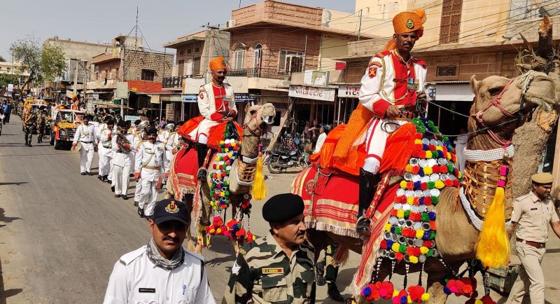 पोकरण. सीमा सुरक्षा बल 87वीं बटालियन के 55वें स्थापना दिवस के मौके पर कस्बे में बुधवार को सुबह प्रभात फैरी का आयोजन किया गया। बीएसएफ के सभी अधिकारी व जवान बुधवार को अलसुबह पोकरण फोर्ट पहुंचे। यहां नगरपालिका अध्यक्ष मनीष पुरोहित ने प्रभात फैरी को झंडी दिखाकर रवाना किया। बटालियन के समादेष्टा रणवीरसिंह, 1971 में हुए भारत-पाक युद्ध में अपने अदम्य साहस का परिचय देने वाले वीर यौद्धा सेवानिवृत कमांडेंट एलआर यादव, बॉर्डर फिल्म के किरदार लांस नायक भैरोसिंह राठौड़ के नेतृत्व में प्रभात फैरी फोर्ट से रवाना होकर गांधी चौक पहुंची। यहां से फोर्ट रोड, सुभाष चौक, स्टेशन रोड, जयनारायण व्यास सर्किल, अंबेडकर सर्किल होते हुए गुरुद्वारा दमदमा साहिब पहुंची। यहां गुरुद्वारा के सेवादारों व कार्यकर्ताओं ने उनका मालाएं पहनाकर व पुष्पवर्षा कर स्वागत किया। बीएसएफ के अधिकारियों व जवानों ने गुरुद्वारे में मत्था टेककर अरदास की।