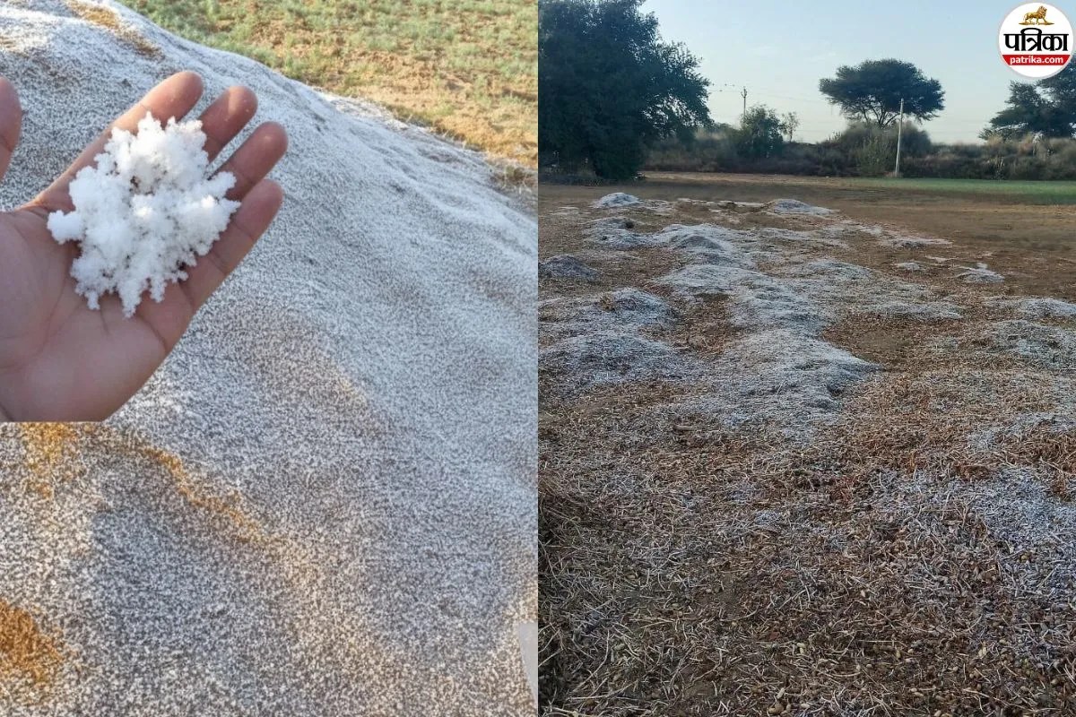 रेगिस्तान में जमी बर्फ की सफेद चादर (फोटो- पत्रिका)