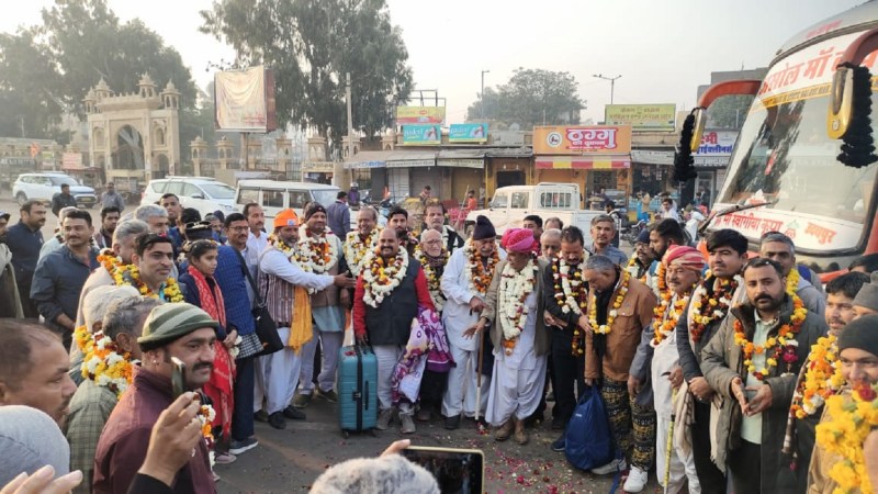 अयोध्या राम मंदिर से लौटे दर्शनार्थियों का स्वागत