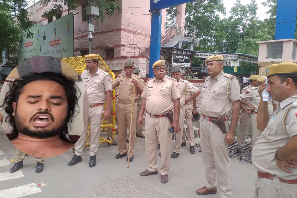 जालोर कलक्ट्रेट के बाहर तैनात रहा पुलिस जाब्ता। फोटो- पत्रिका
