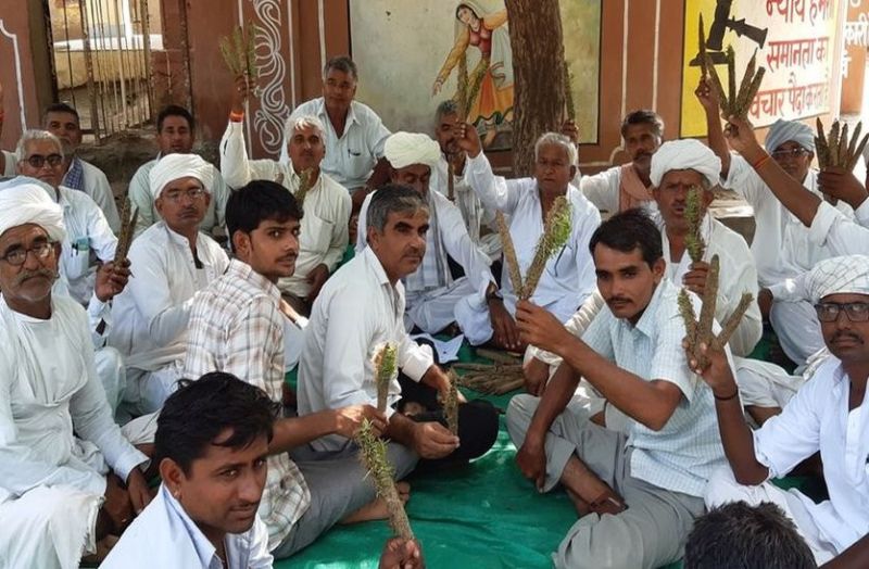 बाजरे की खराब फसल साथ लेकर पहुंचे, जताया विरोध