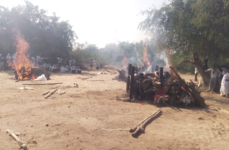 बागोड़ा (जालोर )। भीनमाल के मोरसीम गांव के रहने वाले जैन परिवार के 5 लोगों की सोमवार रात अहमदाबाद-भावनगर हाइवे पर ट्रक-कार दुर्घटना में मौत के बाद मंगलवार को गांव में शवों का अंतिम संस्कार किया। पति-पत्नी, बेटे, सास और साले का एक साथ दाह संस्कार हुआ। अंतिम संस्कार में पूरा गांव उमड़ पड़ा। हर किसी की आंख नम थी। गांव में दिनभर बाजार बंद रहे। कई घरों में चूल्हे ठंड रहे।