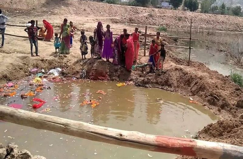 सुंदेलाव तालाब पर इससे पहले हर साल विभिन्न पर्वों पर देवी-देवताओं की प्रतिमाओं का विसर्जन किया जाता रहा है, लेकिन इस बार प्रशासन ने पारम्परिक रूप से तालाब परिसर में ही विसर्जन हो इसके लिए यहां अलग से गड्ढा खोदकर उसमें पंप सेट से पानी भरा गया। इसी गड्ढे में महिलाओं व युवतियों ने प्रतिमाओं का विसर्जन किया। साथ ही पूजन सामग्री भी इसी में डाली गई।