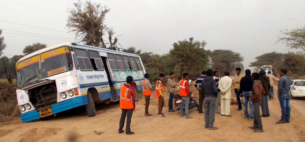 चरली से उम्मेदपुर तक चल रहे हाइवे रोड निर्माण कार्य स्थल पर विभिन्न स्थानों पर संकेतक बोर्ड का अभाव होने के कारण मंगलवार को एक बड़ा हादसा होते-होते टल गया। हुआ यूं कि अगवरी सरहद में सांई बाबा मंदिर के सामने निर्माण कार्य स्थल पर डायवर्ट का संकेेतक बोर्ड लगा नहीं होने के कारण यहां से गुजर रही एक रोडवेज बस के एक साइड के पहिए मिट्टी में धंस गए। जिससे रोडवेज बस तिरछी हो गई। बस में कई यात्री सवार थे। गनीमत रही कि बस पलटी नहीं, अन्यथा एक बड़ा हादसा घटित हो जाता। सूचना पर ग्रामीणों व निर्माण कार्य कर रहे श्रमिकों ने जेसीबी की सहायता से बस को सुरक्षित बाहर निकाला।