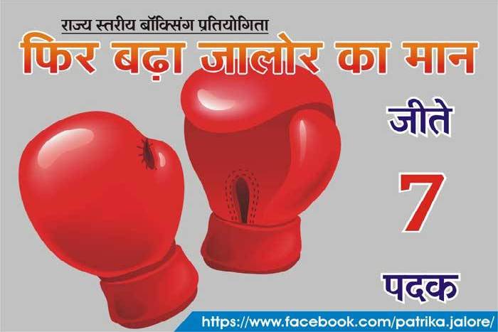 जोधपुर में हुई जूनियर, सब जूनियर महिला-पुरुष राज्य स्तरीय मुक्केबाजी प्रतियोगिता में जालोर के मुक्केबाजों ने 3 स्वर्ण, 1 रजत व 3 कांस्य सहित कुल 7 पदक प्राप्त किए हैं।