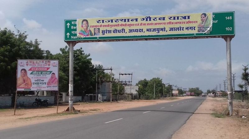 बागरा. जिले का सवा सौ किलोमीटर का सड़क मार्ग बैनरों से अट गया है। गौरव यात्रा में सरकार की उपलब्धियों का बखान करते दर्जनों होर्डिंग्स और सैकड़ों बैनर सरकारी खर्चे पर भी बने हैं। इन बैनरों पर आमजन को लाभ पहुंचाने वाली योजनाओं का जिक्र है और लाभान्वितों का भी। परन्तु नेताओं की चुनावी दावेदारों के बैनरों की संख्या के आगे वे दब ही गए। मुख्यमंत्री की नजर में नम्बर बढ़ाने की चाह में स्थानीय नेता लोगों की समस्या बढ़ा गए। जालोर शहर में बागरा रोड स्थित रीको एरिया में नगर परिषद की ओर से दूरी दर्शाने के लिए बड़ा साइन बोर्ड लगा रखा है, लेकिन भाजयुमो के एक पदाधिकारी ने इस पर ही बैनर लगा दिया। इस साइन बोर्ड पर जालोर से बाड़मेर, रामदेवरा, जोधपुर समेत अन्य स्थानों की दर्शाई गई है। बोर्ड बैनर से ढंका होने के कारण दूर-दराज से आ रहे वाहन चालकों को भारी समस्या झेलनी पड़ी। स्वागत और अभिनंदन के लिए रास्ते में जगह-जगह होर्डिंग एवं बैनर लगाए गए हैं, लेकिन इसमें भी नियम कायदे ताक पर रख दिए। कई जगह सरकारी खम्भों पर ही बैनर सजा दिए। टोल रोड होने के बावजूद लोगों की समस्या पर किसी ने ध्यान नहीं दिया। जिससे टोल रोड पर दूरी दर्शाने वाले बोर्ड पर ही बैनर लगा दिए।