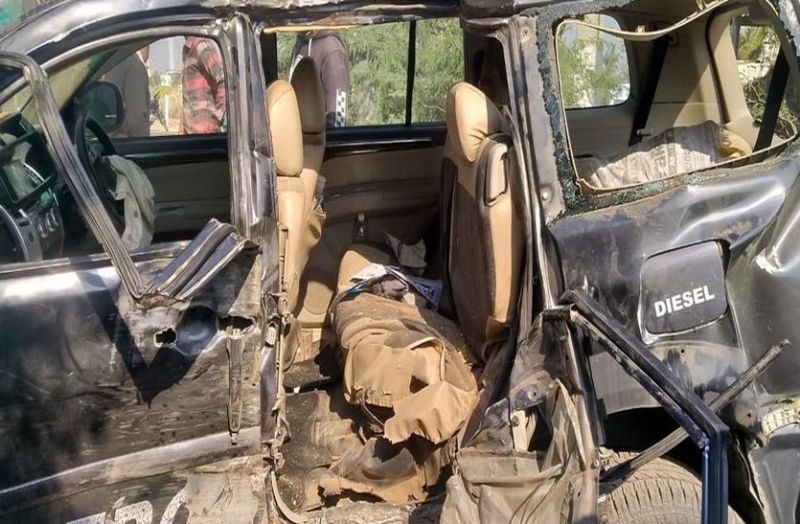 जालोर. धानपुर के निकट हुए सडक़ हादसे में क्षतिग्रस्त हुआ वाहन।