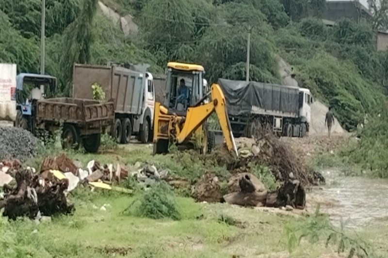 झमाझम बारिश के बाद सुकड़ी में आए बरसाती पानी से रपट के किनारे नदी की तरफ बनाई दीवार पानी के साथ बहती देख ठेकेदार के मजदूरों ने बुलडोजर से मिट्टी डालने का प्रयास किए, लेकिन नदी में आए तेज बहाव से आधा सामान भी मिट्टी में दफन हो गया। अब विभाग लेटलतीफी को लेकर कार्यशैली पर सवालिया निशान लग रहा है।