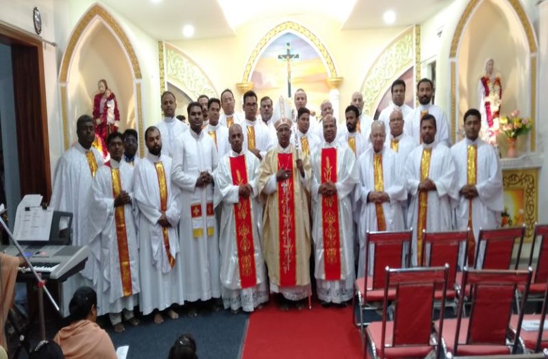कैथोलिक गिरजाघर के प्रवक्ता रेंजी स्मिथ ने बताया कि धर्माध्यक्ष डॉ. पायस ने जल की आशिष के साथ प्रार्थना की। प्रार्थना बेदी की तेल के आशिष से प्रतिष्ठा की। सभा में कहा कि जीवन में विश्वास का होना जरूरी है। इससे ही मनुष्य को जीवन में आगे बढऩे का अवसर प्राप्त होता है। वर्तमान में ईश्वर के प्रति आस्था व विश्वास की कमी देखी जा रही है। मनुष्य भौतिक आवश्यकताओं की ओर दौड़ लगा रहा है, जिससे जीवन में कठिनाइयां देखने मिलती है। प्रार्थना कार्यक्रम में एमसीबीएस के सुपिरियर जनरल फादर जोसफ, प्रोविजनल सुपिरियर फादर डोमनीक, एमसीपीएस सुपिरियर फादर फ्रांसिस बिन, फादर मंगलसिंह, फादर जोली तथा सेंट मेरी गिरजाघर के फादर जोजो, फादर जोबीन का भी सान्निध्य रहा। प्रार्थना आराधना से पूर्व ईसाई श्रद्धालुओं के बच्चो ने सुन्दर नृत्य प्रस्तुत कर सुन्दर नृत्य के साथ ही श्रद्धालुओं ने हाथ में रंग बिरंगी छतरियों के साथ शोभायात्रा प्रारंभ हुई। शोभायात्रा गिरीजाघर के परिसर में पहुंचने के साथ ही अतिथियों ने गिरीजाघर के प्रवेश द्वार पर फीता कांटकर गिरजाघर मे प्रवेश किया। सेन्ट मेरी गिरीजाघर के फादर जोजो ने बताया कि गिरजाघर में डॉ. पायस थॉमस ने जल की आशिष प्रार्थना के साथ प्रार्थना की।