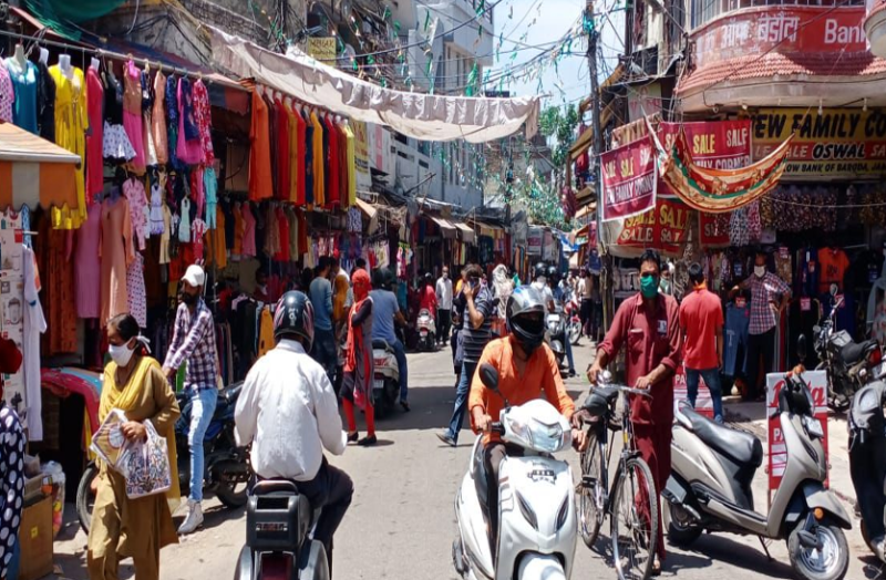 पुराने शहर के ओल्ड हाॅस्पिटल रोड, राज तिलक रोड, पुरानी मंडी व लिंक रोड इलाके में भी खरीदारी ने जोर पकड़ा। इन बाजारों में सबसे अधिक दुकानें कपड़ों व जूतों की है, लिहाजा काफी संख्या में महिलाएं खरीदारी करती पाई गई। इस दौरान पुरानी मंडी में कई बार गाड़ियों के जाम की स्थिति भी बनी लेकिन कुल मिलाकर हालात नियंत्रित रहे और कहीं पर भी कोई भीड़ जैसी स्थिति पैदा नहीं हुई। दुकानदार भी सचेत दिखे और लोग भी। दुकानों के भीतर भी सीमित कर्मचारियों के साथ काम चलाया गया। कर्मचारी मास्क पहनकर काम करते दिखे। खरीदारी करने निकले लोग भी मास्क पहने दिखे। बाजारों में शारीरिक दूरी का पालन करवाने व हालात पर नजर रखने के लिए सुरक्षाकर्मी भी दिन भर बाजारों में गश्त करते दिखे।