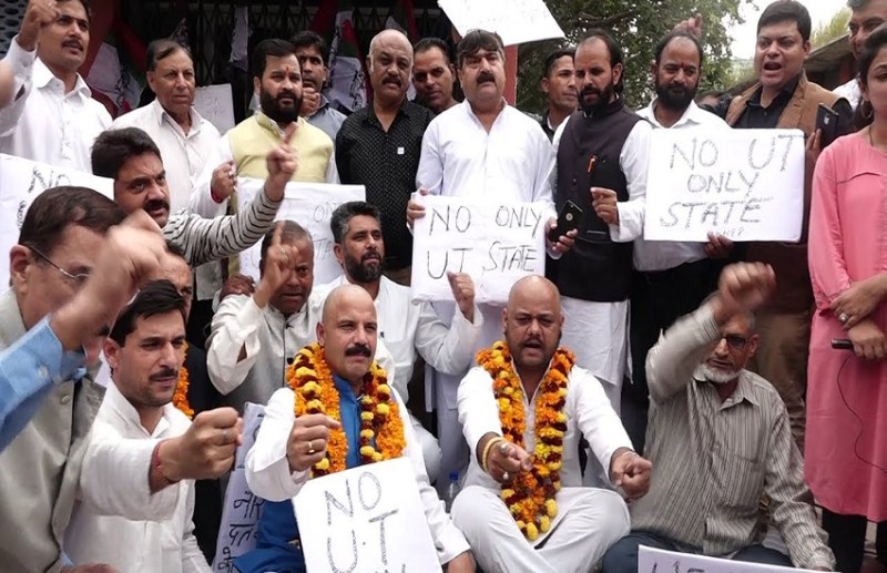 जम्मू (योगेश). विरोध करने का भी अलग-अलग ढंग होता है। बात ऐसे ही एक विरोध की। जब नेताजी को कुछ नहीं सूझा तो सिर ही मुंडवा लिया। जम्मू-कश्मीर के केंद्र शासित प्रदेश बनने पर के साथ ही पैंथर्स पार्टी ने जम्मू को अलग राज्य का दर्जा दिए जाने की मांग को लेकर सत्यग्रह शुरू किया। पार्टी के प्रदेश प्रधान बलवंत सिंह मनकोटिया और वरिष्ठ नेता अनिल रकवाल ने अपने सिर मुंडवाकर विरोध जताया। कार्यकर्ताओं ने यह संकल्प लिया कि जब तक जम्मू संभाग को राज्य का दर्जा नहीं मिल जाता है तब तक हमरा संघर्ष जारी रहेगा। पार्टी के प्रदेश प्रधान मनकोटिया के नेतृत्व में कार्यकर्ता तवी पुल पर महाराजा हरि सिंह की प्रतिमा के नजदीक इक_े हुए। हाथों में बैनर पकड़े कार्यकर्ताओं ने कहा कि जम्मू-कश्मीर एक पूर्ण राज्य था जिसको दो केंद्र शासित प्रदेशों में बांटकर उसका दर्जा कम कर दिया गया है। कार्यकर्ताओं ने बैनरों पर लिखा था कि हमें जम्मू राज्य चाहिए, हमें केंद्र शासित प्रदेश नहीं चाहिए, हम अलग जम्मू राज्य चाहते हैं। इससे पहले कि कार्यकर्ता महाराजा हरि सिंह की प्रतिमा के नजदीक सत्यग्रह शुरू करते वहां पर पहुंची पुलिस ने कार्यकर्ताओं को वहां से जबरन हटा दिया। कार्यकर्ता नारेबाजी करते हुए प्रेस क्लब के बाहर पहुंच गए। वहां पर मनकोटिया और रकवाल ने सिर मुंडवाया। कार्यकर्ताओं को संबोधित करते हुए मनकोटिया ने कहा कि भारतीय जनता पार्टी ने जम्मू संभाग के लोगों के साथ धोखा किया है। डोगरा राज्य जम्मू-कश्मीर को विभाजित कर दिया गया जिसमें जम्मू कश्मीर और लद्दाख को अलग-अलग केंद्र शासित प्रदेश बना दिया गया। 72 वर्ष के इंतजार के बाद भी जम्मू को न्याय नहीं मिला। उन्होंने कहा कि केंद्र सरकार ने कुछ समय पहले पुलिस और अन्य विभागों में नियुक्तियां की हैं, जिसमें कश्मीर घाटी को प्राथमिकता दी गई है। जम्मू को नजरंदाज किया गया। यूरोपियन यूनियन के प्रतिनिधिमंडल का दौरा भी कश्मीर तक सीमित रहा। इसमें भी जम्मू के साथ भेदभाव किया गया। जम्मू की अनदेखी अभी भी रुकी नहीं है। जम्मू संभाग को अलग राज्य का दर्जा दिलाने के लिए हमारा संघर्ष जारी रहेगा। इस मौके पर कैप्टन अनिल गौड़, गगन प्रताप सिंह, शंकर सिंह चिब, धनी राम अत्री व अन्य उपस्थित थे।