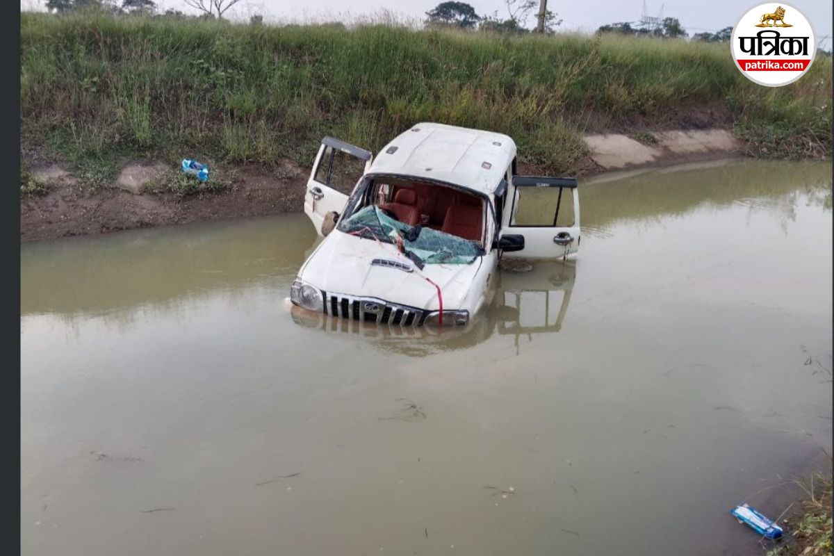 अनियंत्रित कार नहर में गिरी (फोटो सोर्स- पत्रिका)