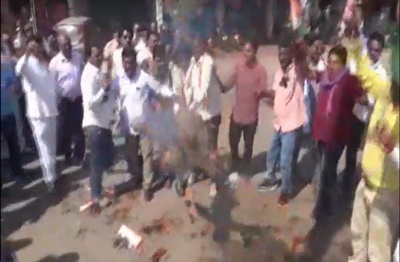 VIDEO : धरना स्थल पर गूंजती रही मंतू-रमन की आवाज, फिर कांग्रेसियों ने दोनों पूर्व सीएम का जलाया पुतला