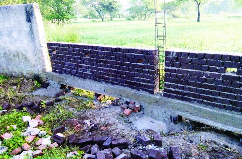 अमलीडीह के स्कूल में बनाए जा रहे अहाते में गड़बड़ी