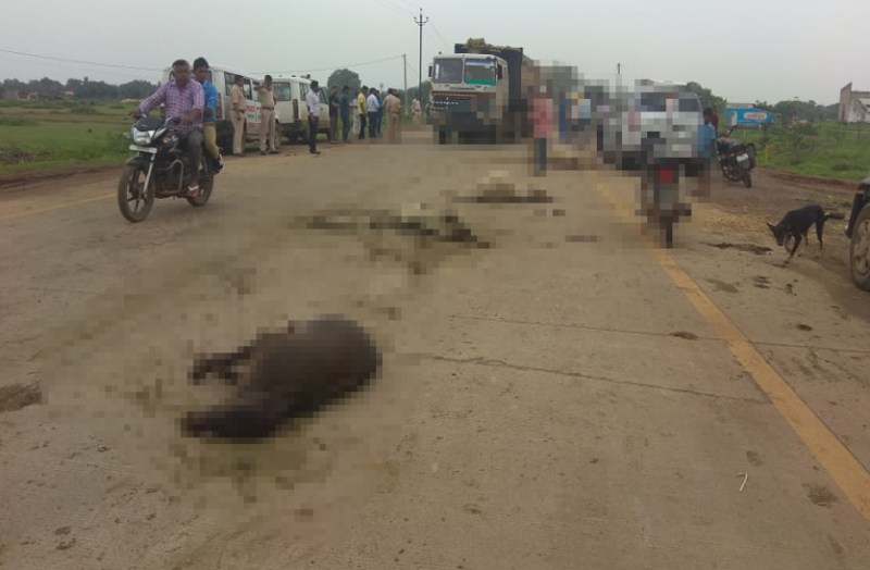 नेशनल हाइवे पर दर्जनों मवेशियों को भारी वाहन ने लिया चपेट में, पांच की दर्दनाक मौत