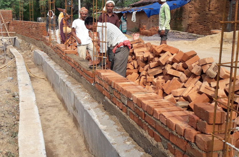 बम्हनीडीह विकास खण्ड के ग्राम बघौदा के आश्रित के स्कूल में बाउंड्रीवाॅल का निर्माण लाल ईंट से किया जा रहा है।