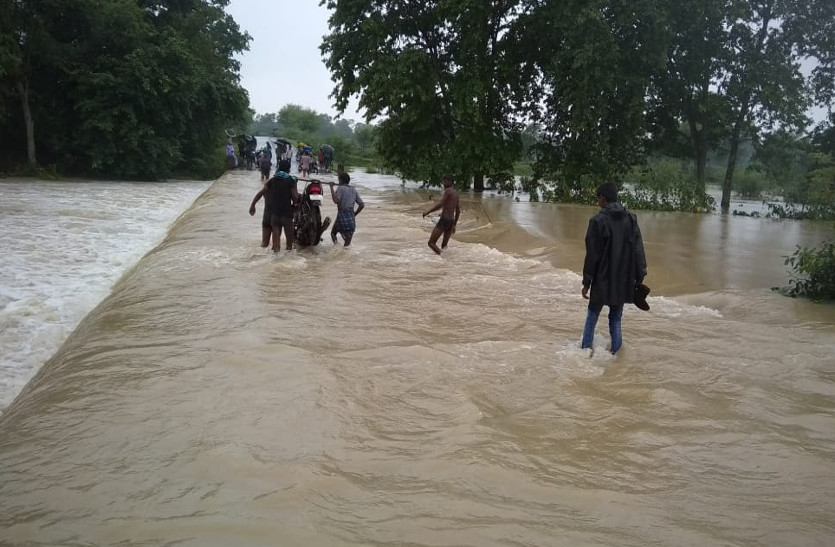 पुल-पुलियों की ऊंचाई कम होने से पुल के ऊपर से बह रह पानी, जान जोखिम में डालकर पुल पार कर रहे ग्रामीण