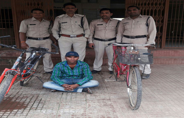 सक्ती पुलिस ने एक शातिर चोर को पकड़ा है, उसके कब्जे से चोरी की तीन साइकिल बरामद हुई है। पूछताछ के बाद साइकिल चोर को पुलिस ने जेल दाखिल कर दिया है। सक्ती पुलिस को मुखबिर से सूचना मिली थी कि परसदाखुर्द का रहने वाला एक युवक साइकिल चोरी की वारदात को अंजाम देता है। उसके पास चोरी की कई साइकिलें हंै, जिसे वह औने-पौने दामों में अपने परिचितों को बिक्री करता है। शंका के आधार पर पुलिस ने गुरूवार को परसदाखुर्द निवासी सुमिरन लहरे पिता भरत लहरे को अपने कब्जे में लेकर पूछताछ की, तब वह हिलाहवाला करता रहा। कड़ाई से पूछताछ करने पर उसने चोरी कबूल कर ली। उसके कब्जे से पुलिस ने चोरी की तीन साइकिल जब्त की है। पुलिस ने बताया कि थाने में साइकिल चोरी की कई मामले सामने आए थे। हाल ही में दिलेश्वर सिदार पिता सोहन की रेंजर साइकिल चोरी हुई थी।