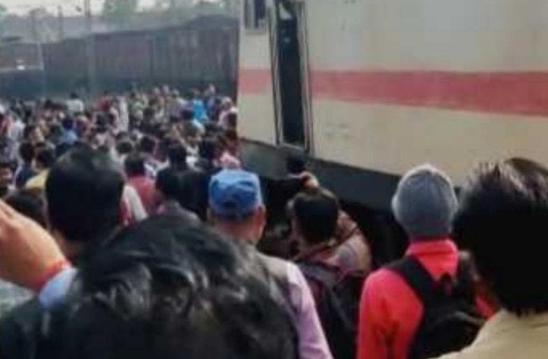 टिकट को लेकर टीटी से विवाद, यात्रियों ने ट्रेन के सामने खड़े होकर किया हंगामा