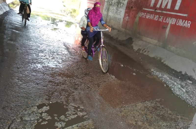 अंडरब्रिज के नीचे सीसी रोड में सरिया बिछाई गई है जो पानी भरे होने से सरिया पूरा का पूरा बाहर निकल आया है। यहां दिन भर हजारों लोग आवागमन करते हैं और यही जर्जर अंडरब्रिज को पार कर किसी तरह अपना सफर तय करते हैं। यहां पार करने में लोगों को जान जोखिम में डालना पड़ता है। क्योंकि बाइक सरिया में फंस जाती है और लोग दुर्घटना के शिकार होते हैं। हर रोज यहां कोई न कोई दुर्घअना के शिकार होते हैं।