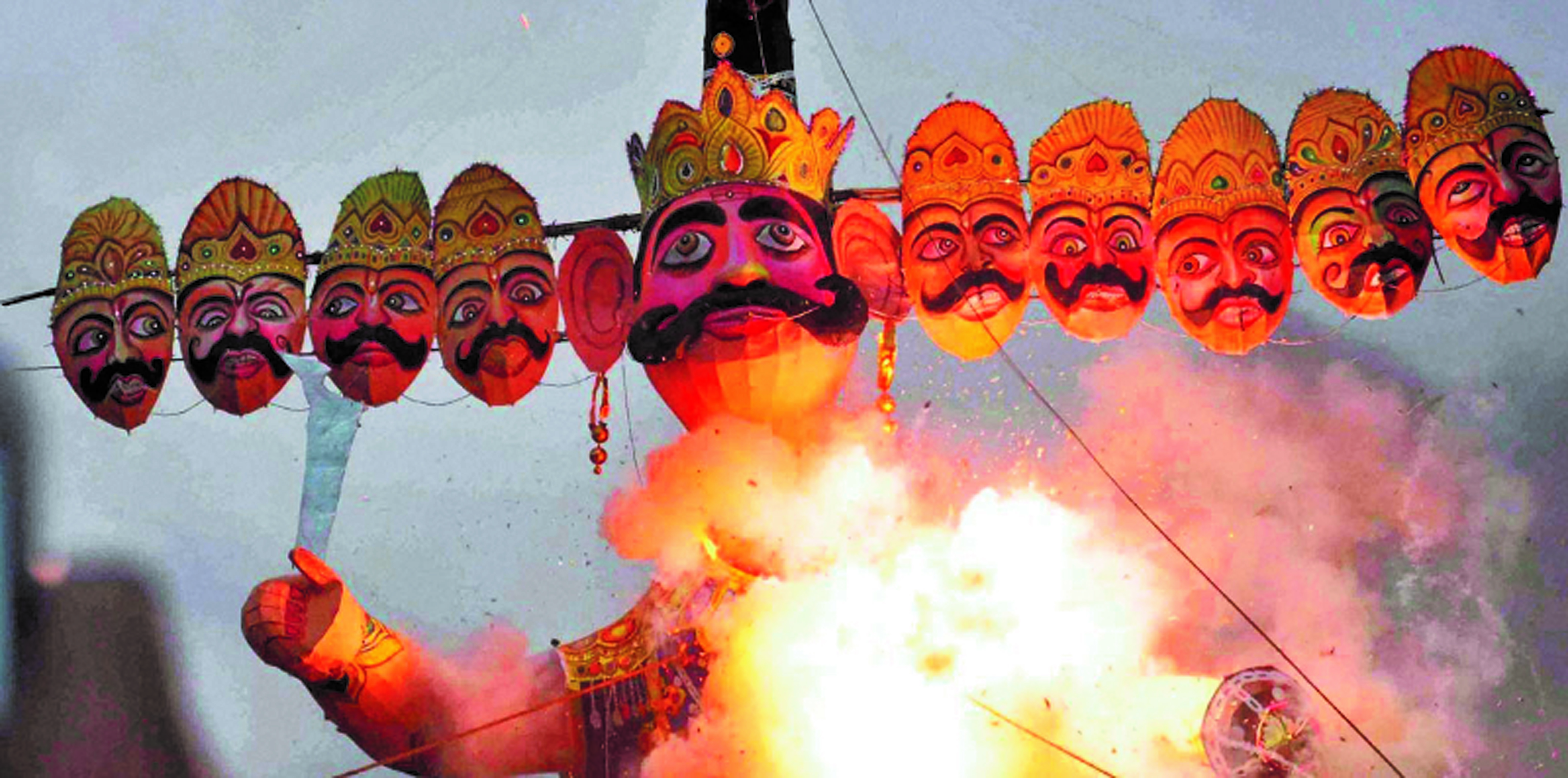 ravan ke putale ka kiya gaya dahan